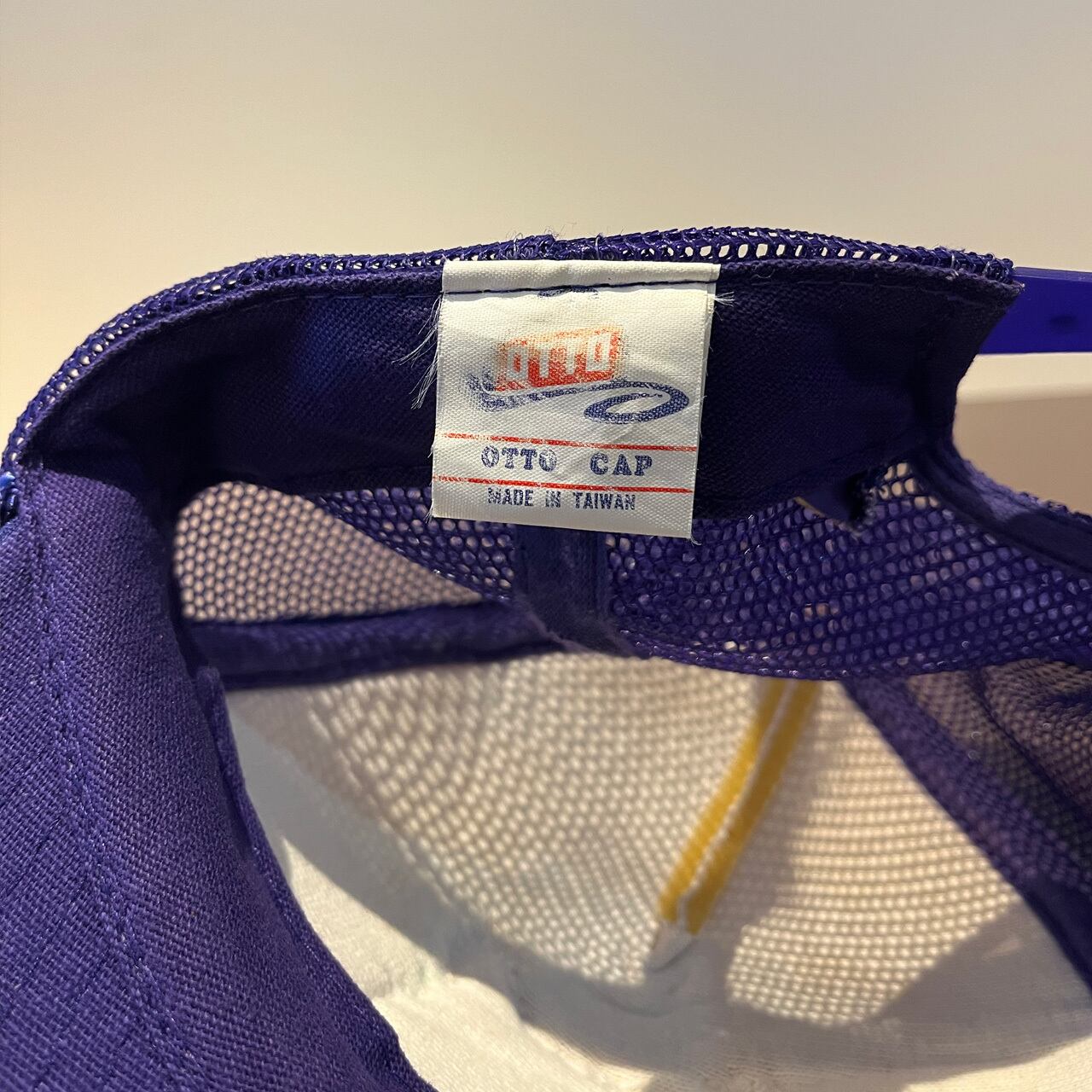 バイキング風の男の顔が印象的な80年代後半〜90年代前半頃のOTTO製5パネルメッシュキャップです。パープル×ホワイトのツートンカラー。グッドコンディション。人とかぶらない一点物。