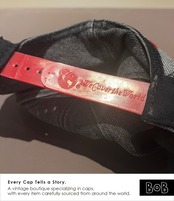 A kids’ cap from the early 1990s, officially licensed by the NBA and featuring the Chicago Bulls. Faded black denim crown with a vivid red visor in a bold two-tone design. Green undervisor and “We Cover the World” engraved on the snapback. Tag reads “NBA Product / MADE IN TAIWAN R.O.C.” A rare vintage piece in kids’ size—perfect for parent-child matching, a gift for close friends, or as a collectible.
