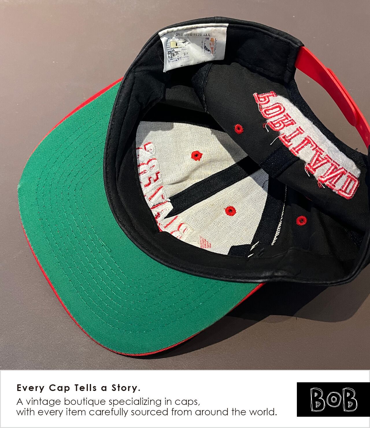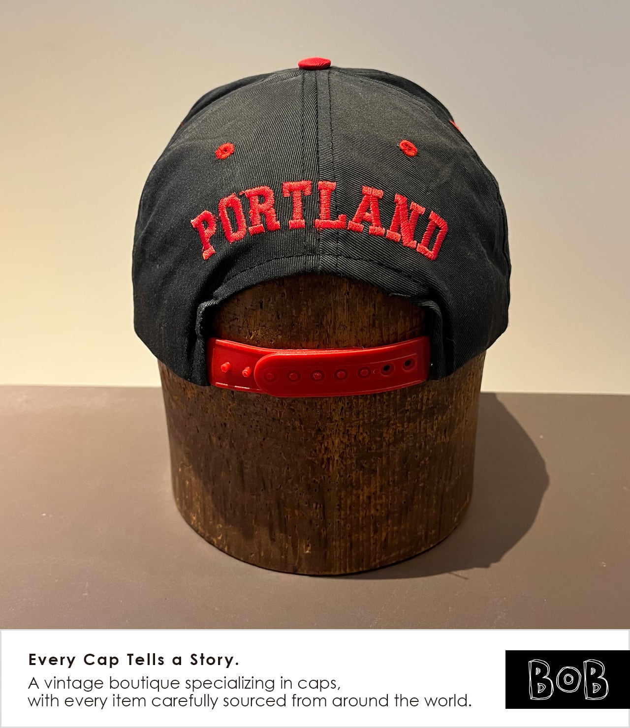 NBA Portland Trail Blazers(ポートランド・トレイルブレイザーズ)の90sツートンキャップ。1990年代前半〜中頃、クライド・ドレクスラー在籍期のLogo 7製NBA公式ライセンス品。チームカラーのブラック×レッドのツートンにグリーンアンダーバイザー、バックには本拠地“PORTLAND”の刺繍。NBA Portland Trail Blazers 2-Tone Cap from the 90s. An official NBA licensed piece by Logo 7, produced in the early to mid-1990s during the Clyde Drexler era. Features the team’s black and red two-tone colorway with a green undervisor and “PORTLAND” embroidery on the back.