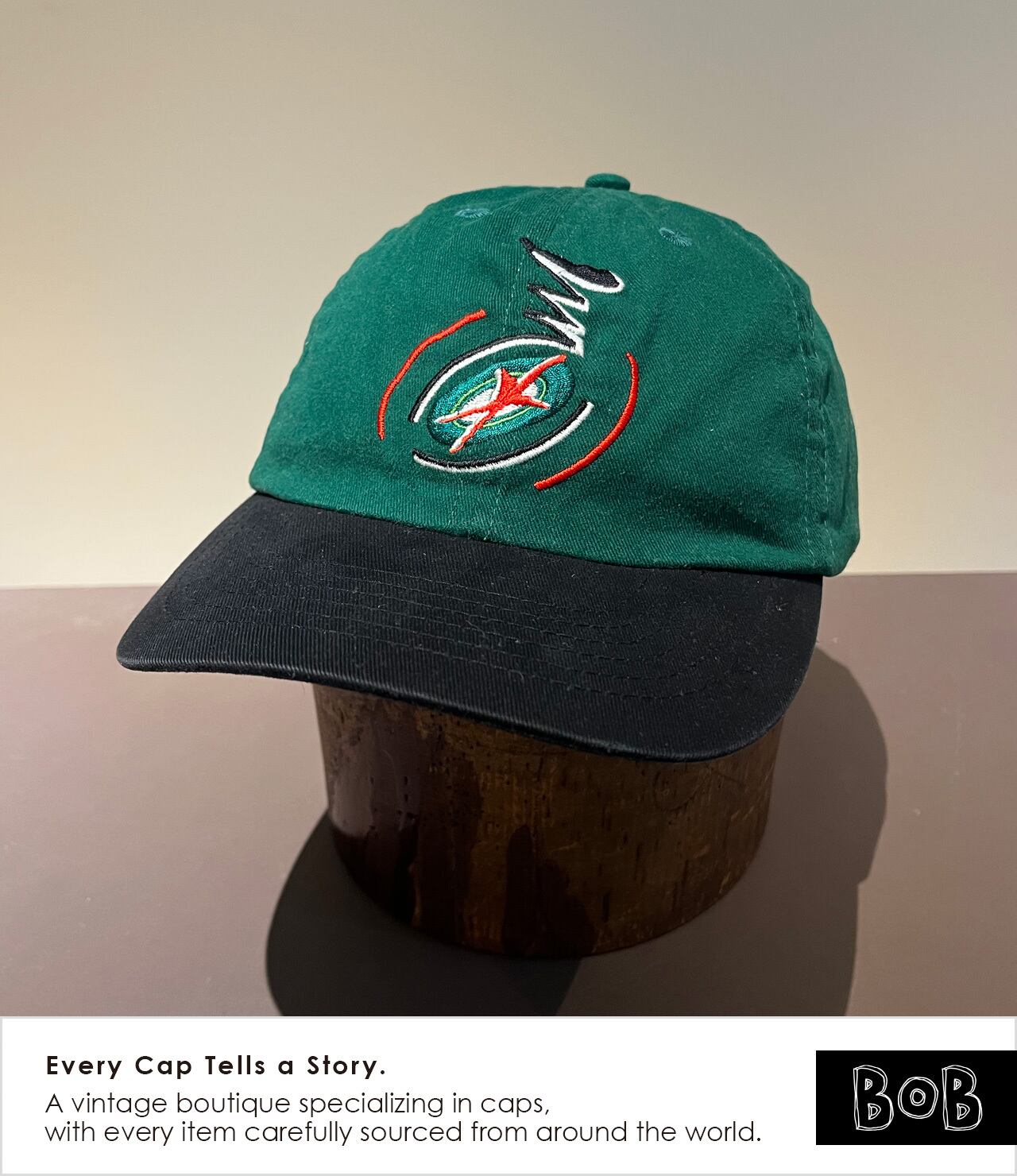 オランダ発のビールブランド「Heineken(ハイネケン)」が、90年代後半に展開したスペイン語圏に向けた音楽イベント連動プロモーション“EN VIVO”のプロモキャップ。ブラック×グリーンの2トーンボディに、フロントにはブランドを象徴する赤い星を中心に、音の波紋を思わせる多色の円弧刺繍が広がる特別仕様ロゴ。A promotional cap from Heineken, the iconic beer brand from the Netherlands, produced for its Spanish-language “EN VIVO” music promotion in the late 1990s. The black-and-green two-tone body features a special logo design on the front: Heineken’s signature red star at the center, surrounded by multicolored arcs evoking the ripples of sound waves.