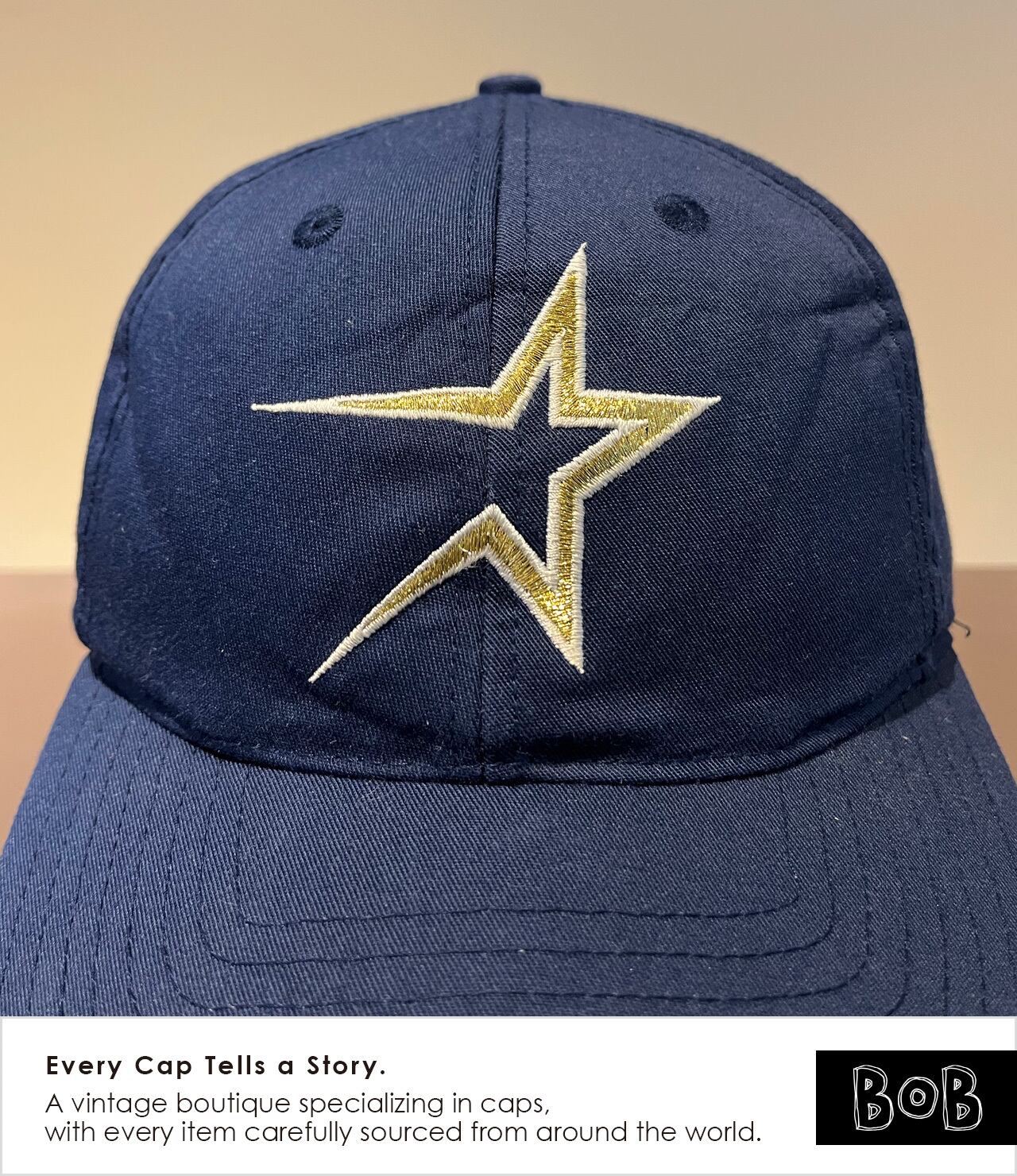 MLB Houston Astros(ヒューストン・アストロズ)の90s "Shooting Star" ロゴキャップ。90年代後半のわずか数年しか採用されなかったゴールドの「シューティングスター・ロゴ」。Twins Enterprise製(現 ’47 Brand)のMLB公式ライセンスモデル。 MLB Houston Astros 90s “Shooting Star” logo cap. Features the gold Shooting Star emblem used only for a few seasons in the late 1990s. An official MLB licensed model manufactured by Twins Enterprise (now ’47 Brand).