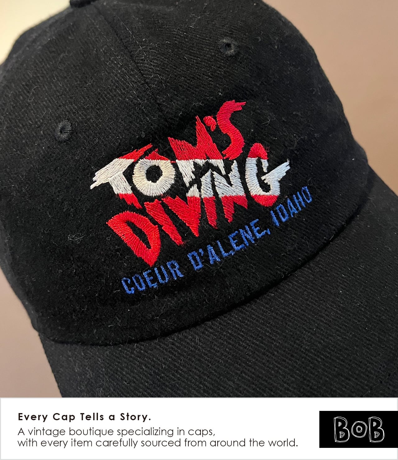 アイダホ州Coeur d'Aleneのダイビングショップ「TOM'S DIVING」の00sプロモキャップ。GOOD DESIGN。