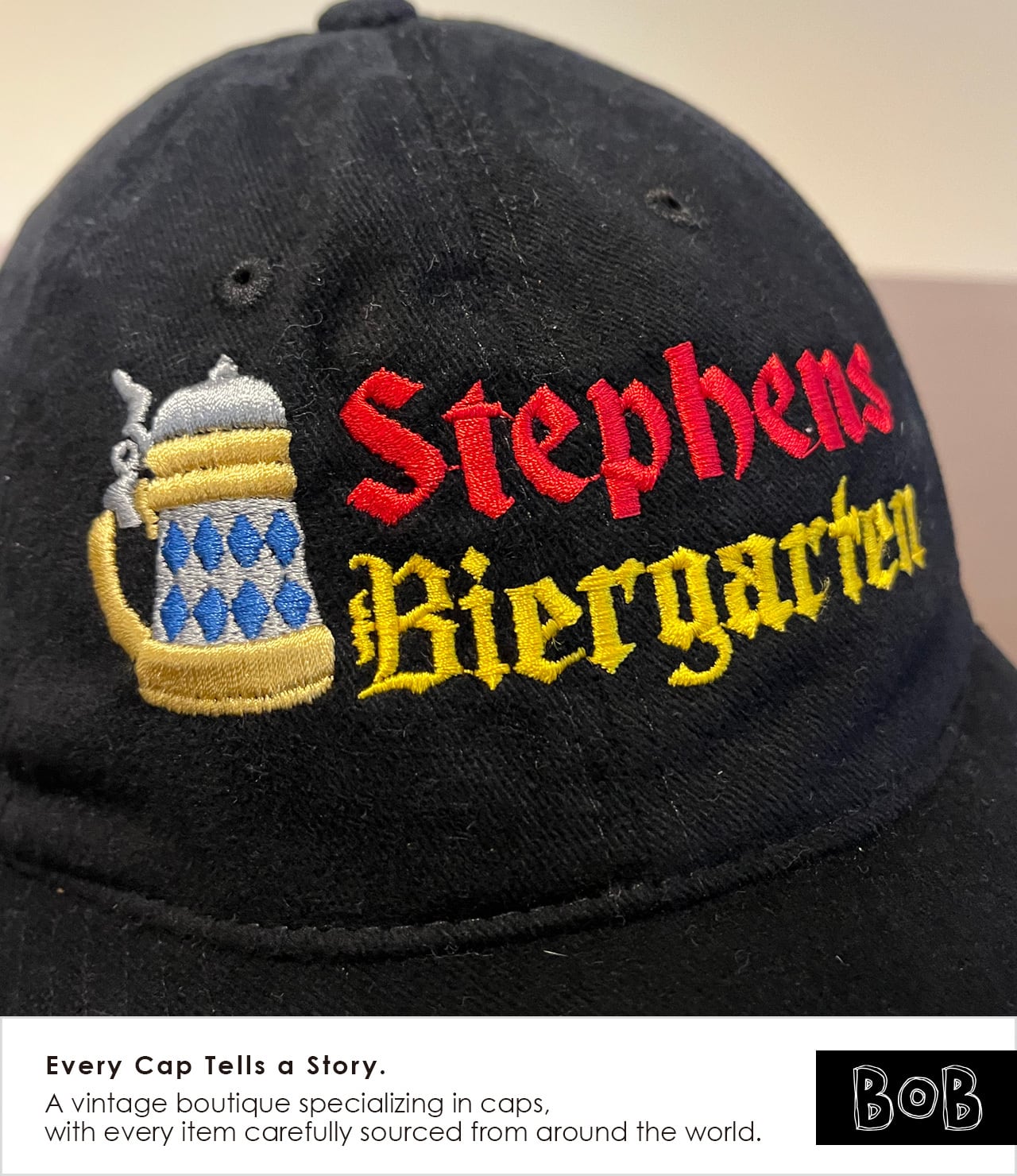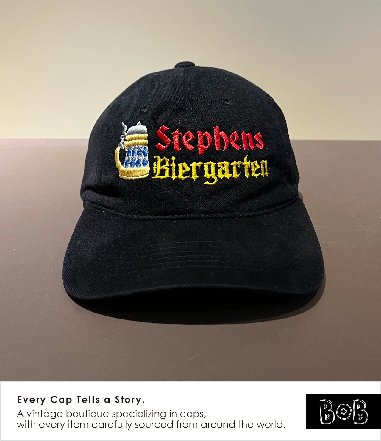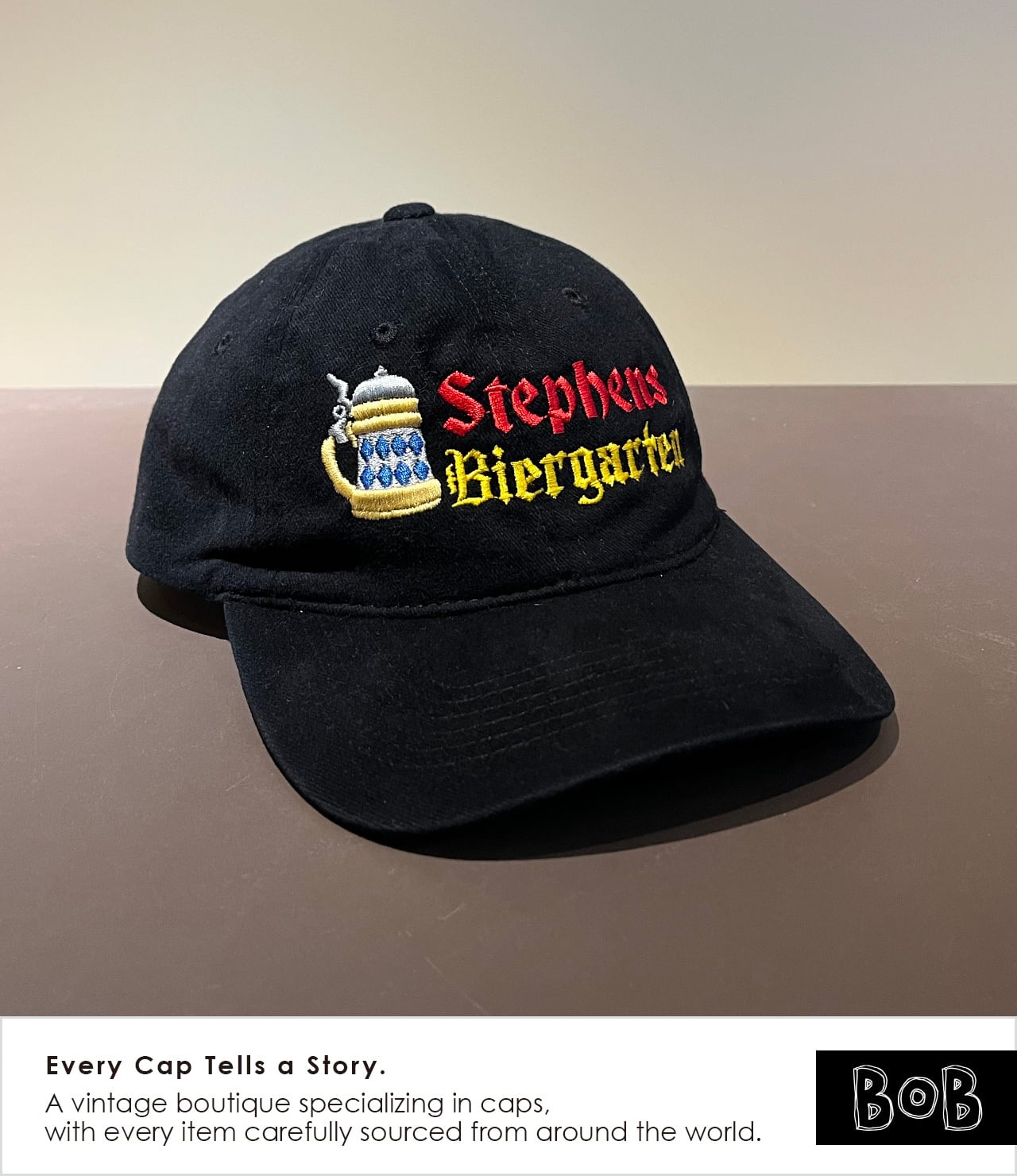 北米最大級のドイツ祭「Mount Angel Oktoberfest」のビアホール「Stephens Biergarten」のスーベニアキャップです。ブラックボディにビアジョッキxオールドイングリッシュがいい感じ。