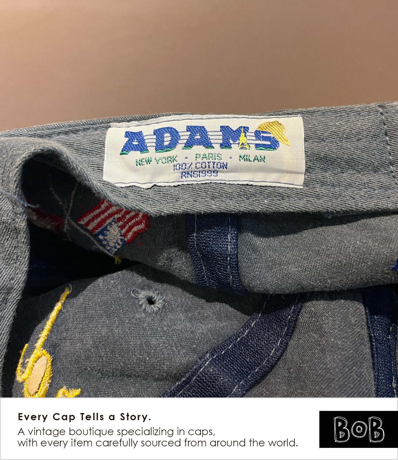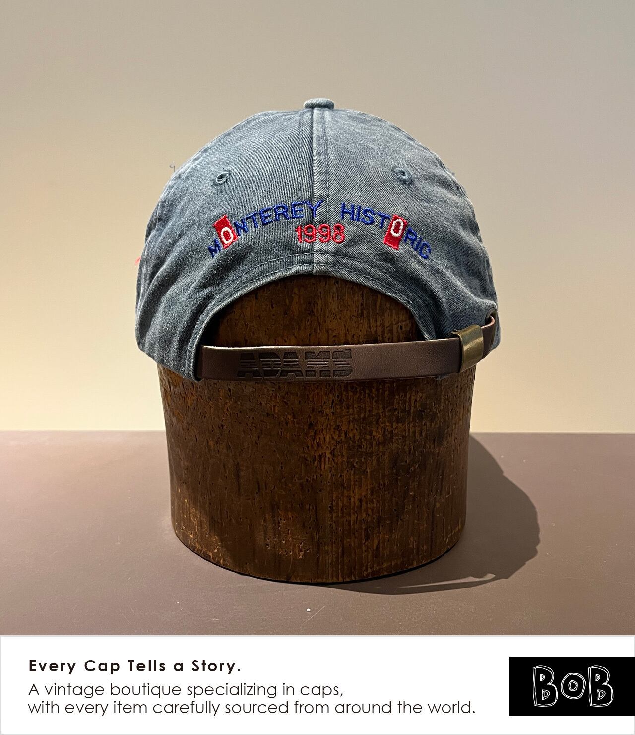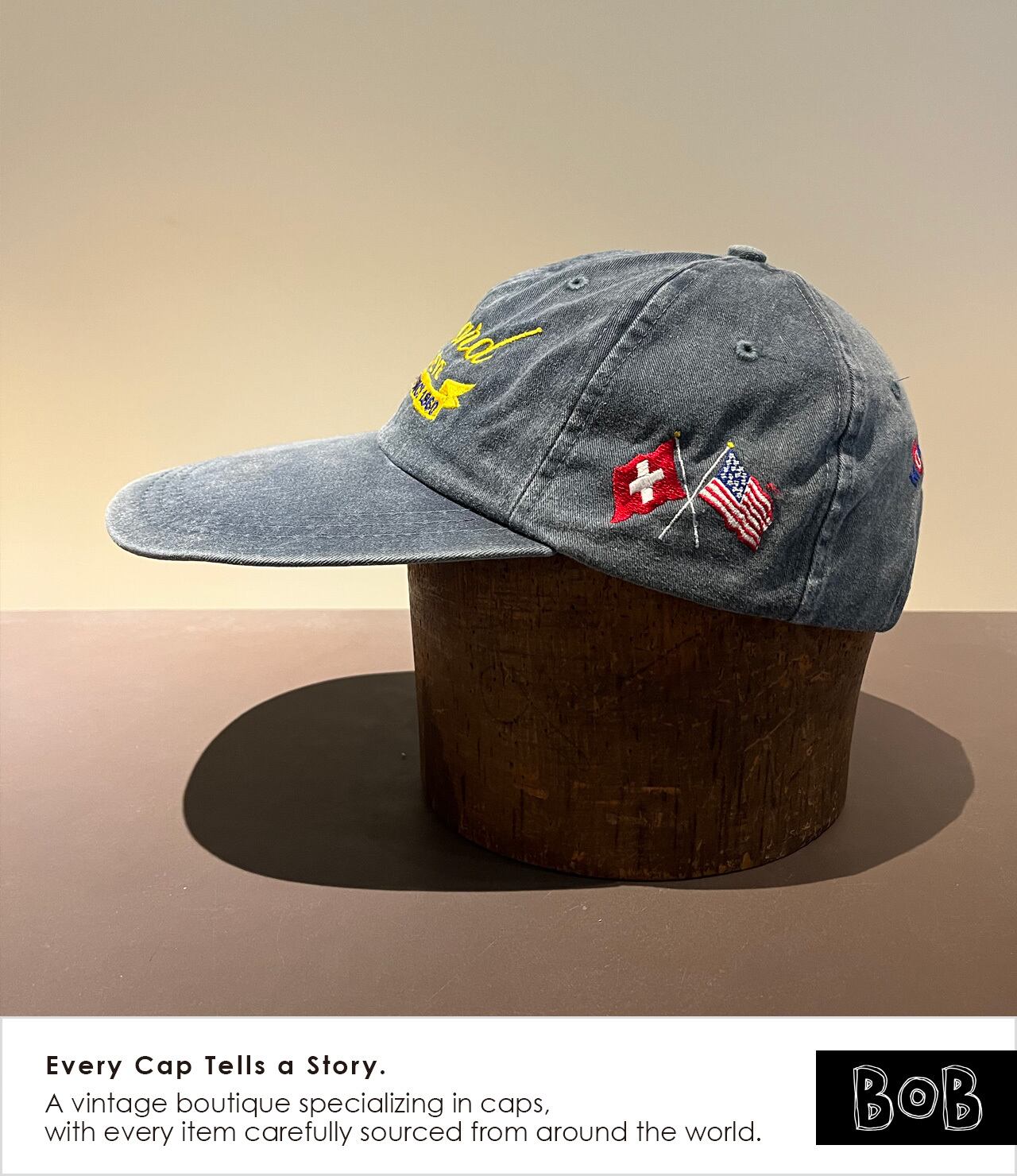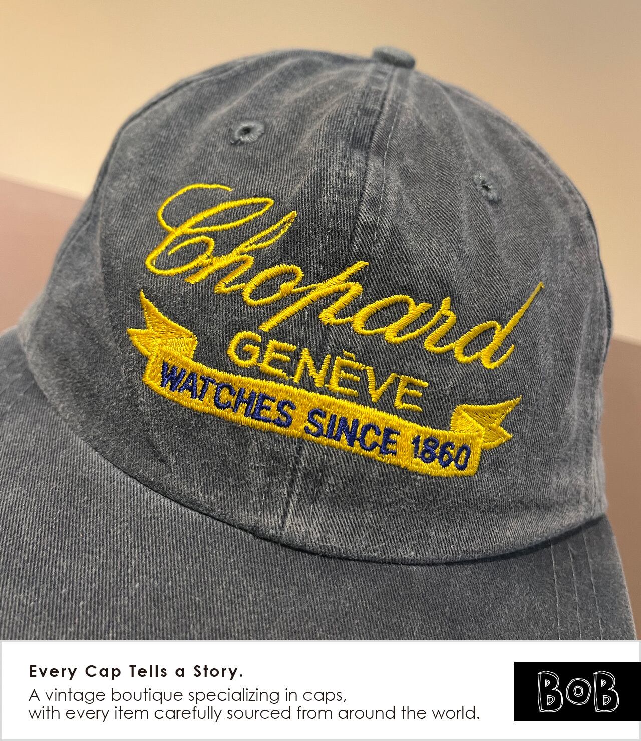 夏のアメリカ・モントレーで開催されるクラシックカーイベント「MONTEREY HISTORIC」において、1998年にスイスの老舗時計ブランドChopardがパートナーを務めた際のプロモキャップです。Chopardの現会長カール=フリードリッヒ・ショイフレ氏は、大のクラシックカーコレクターとして知られています。時計製造における「精密さ」と、ヴィンテージマシンの「美学」。その2つが共鳴する場所で、限られた関係者やエントラントのみが手にすることができたアイテム。バイザー長め。フェードもいい感じです。