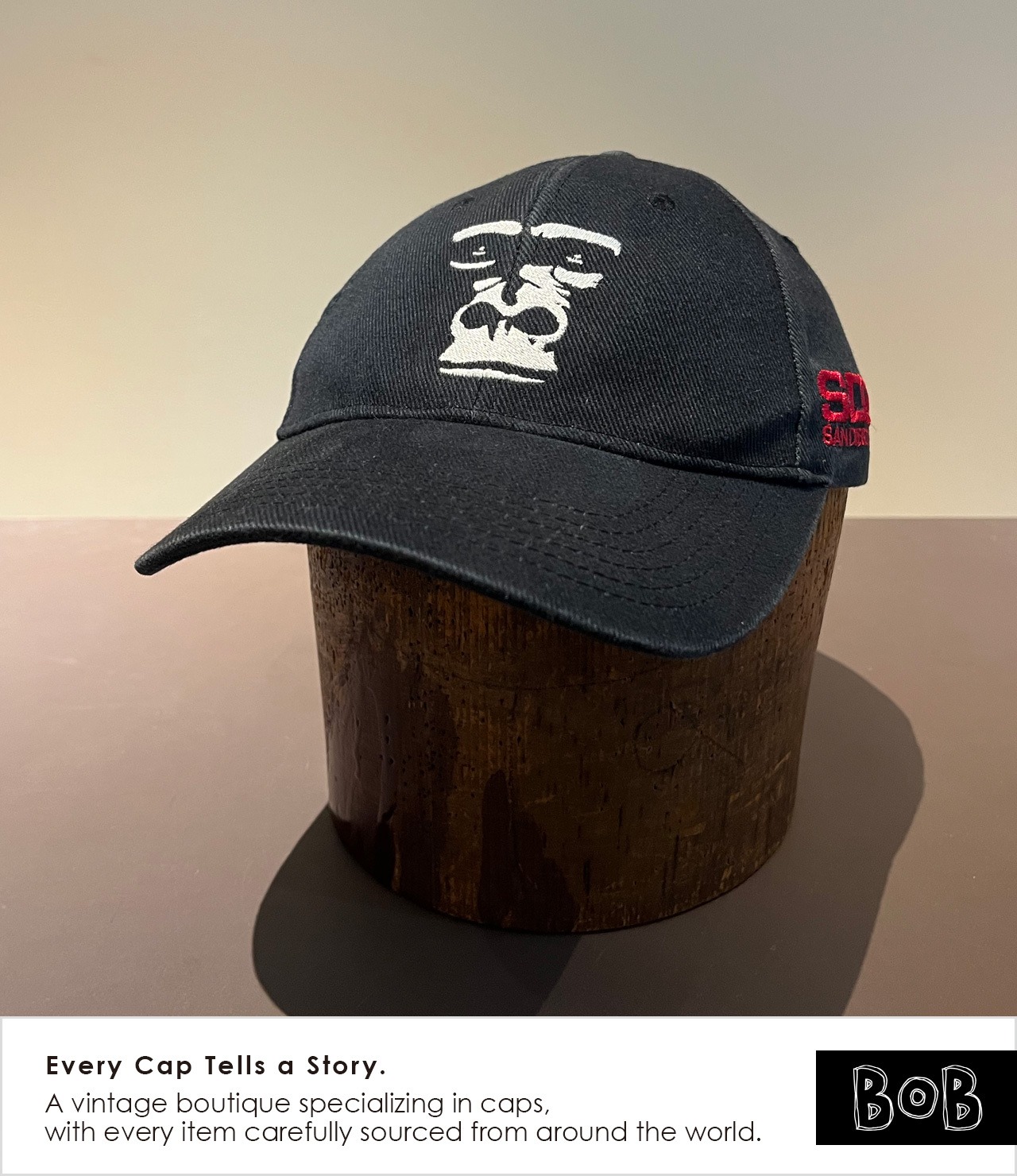 San Diego Zoo(サンディエゴ動物園)のゴリラフェイス・スーベニアキャップ。ストリートなノリの無機質な表情のゴリラフェイス。サイドにはSDZ / SAN DIEGO ZOO。