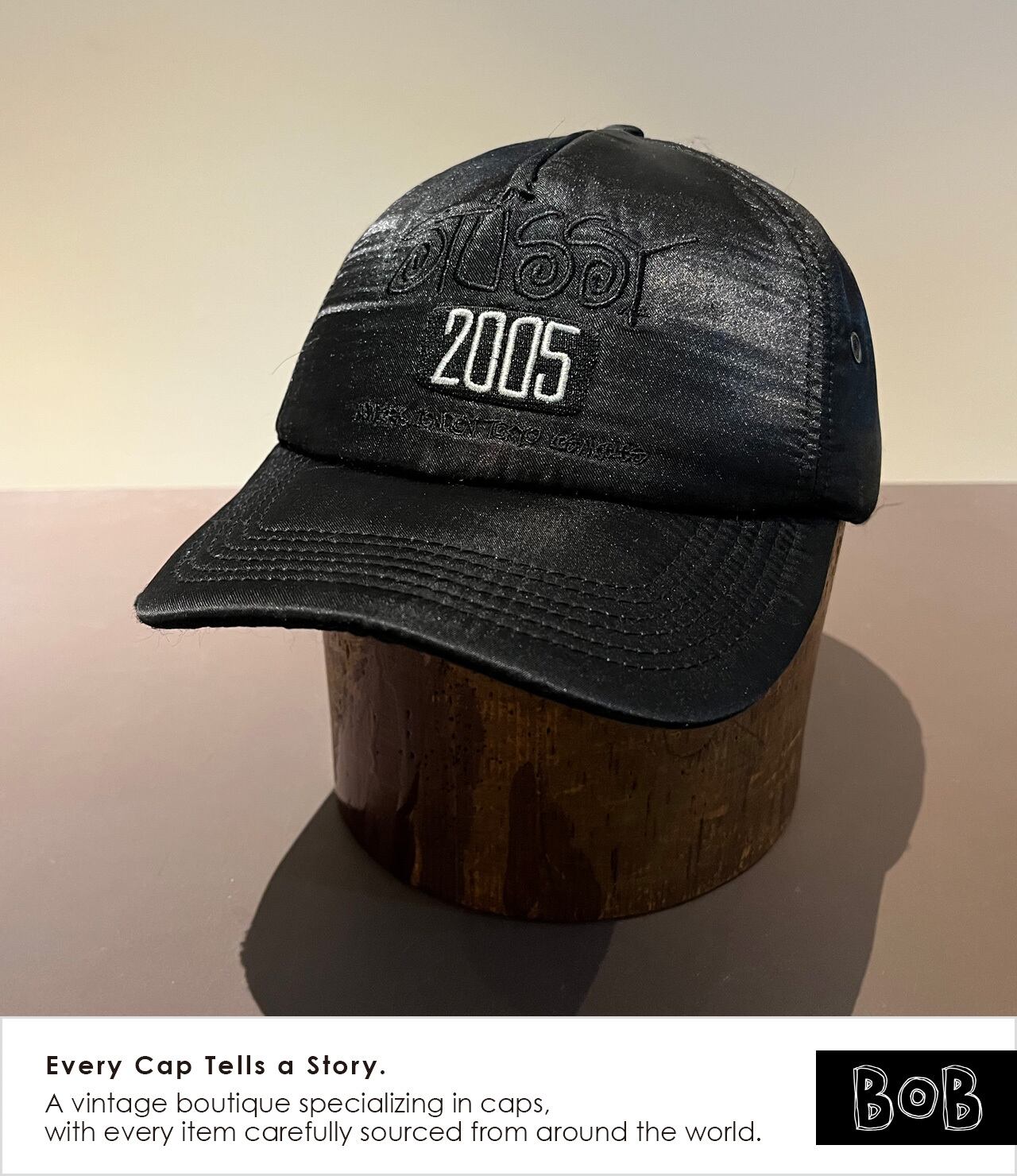 妖艶な光沢をまとったStüssy Headgear。100%レーヨンのサテン調ボディに、同色のショーンフォント「Stüssy」とシルバーの「2005」刺繍。光の当たり方で表情が変わり、コットンキャップとは異なるムード。ブランド25周年の2005年製、オールドステューシー。