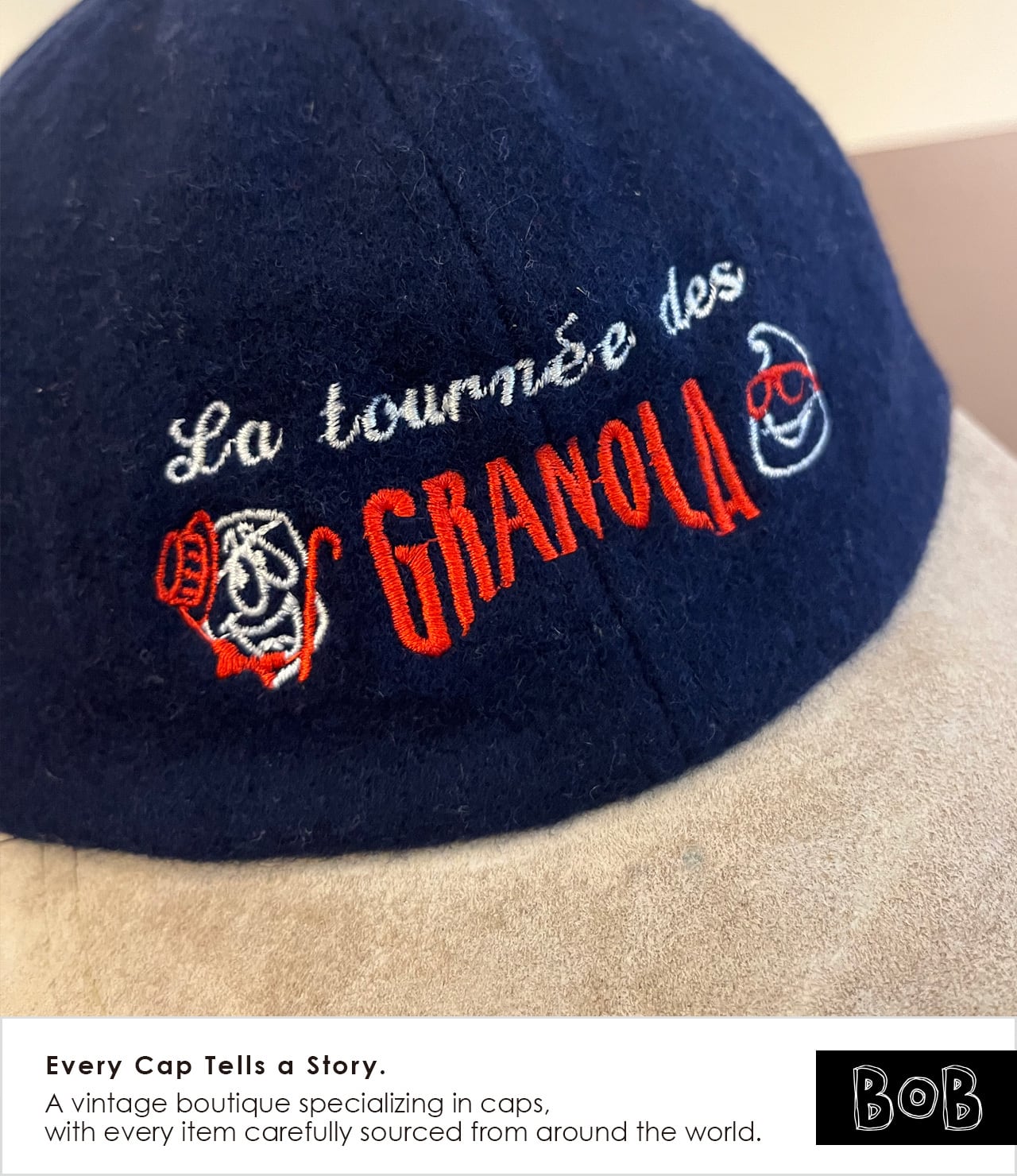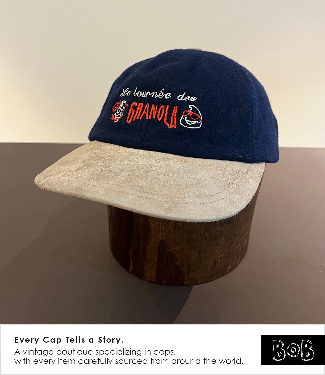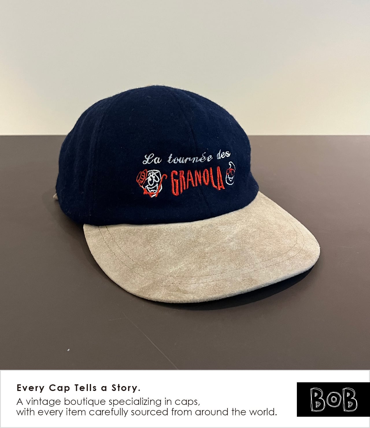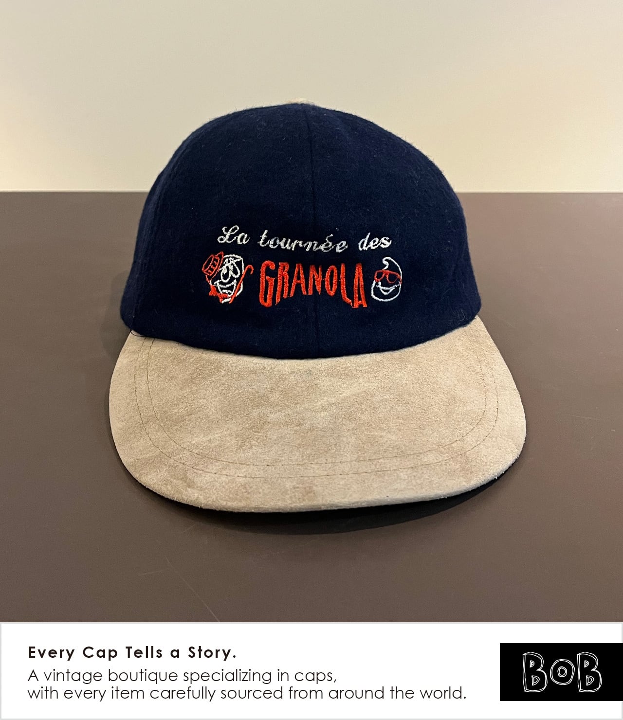 French Promo Cap / “La tournée des GRANOLA” / Leclerc / Navy Melton / Suede-Look Brim / Metal Buckle / AJM International