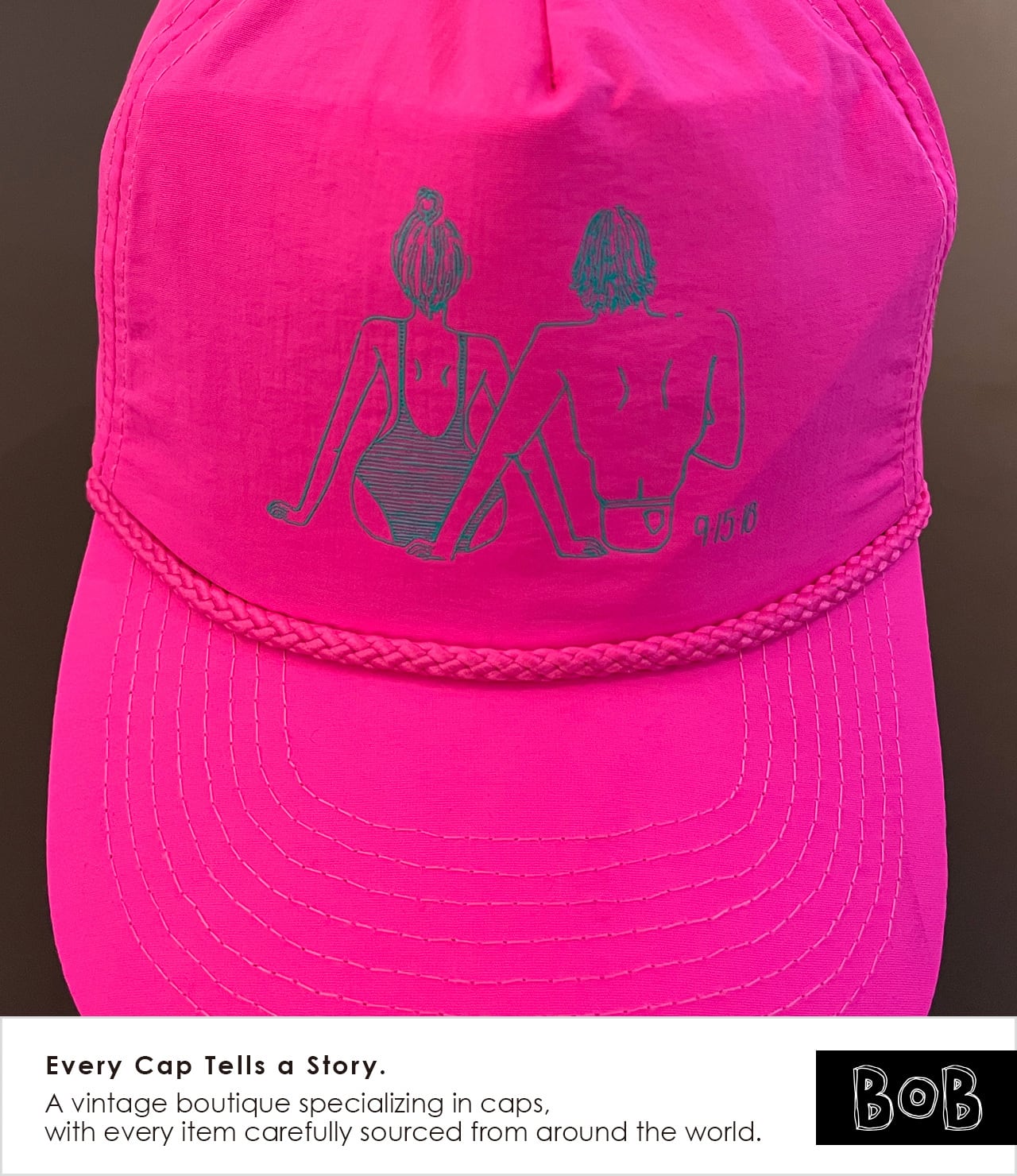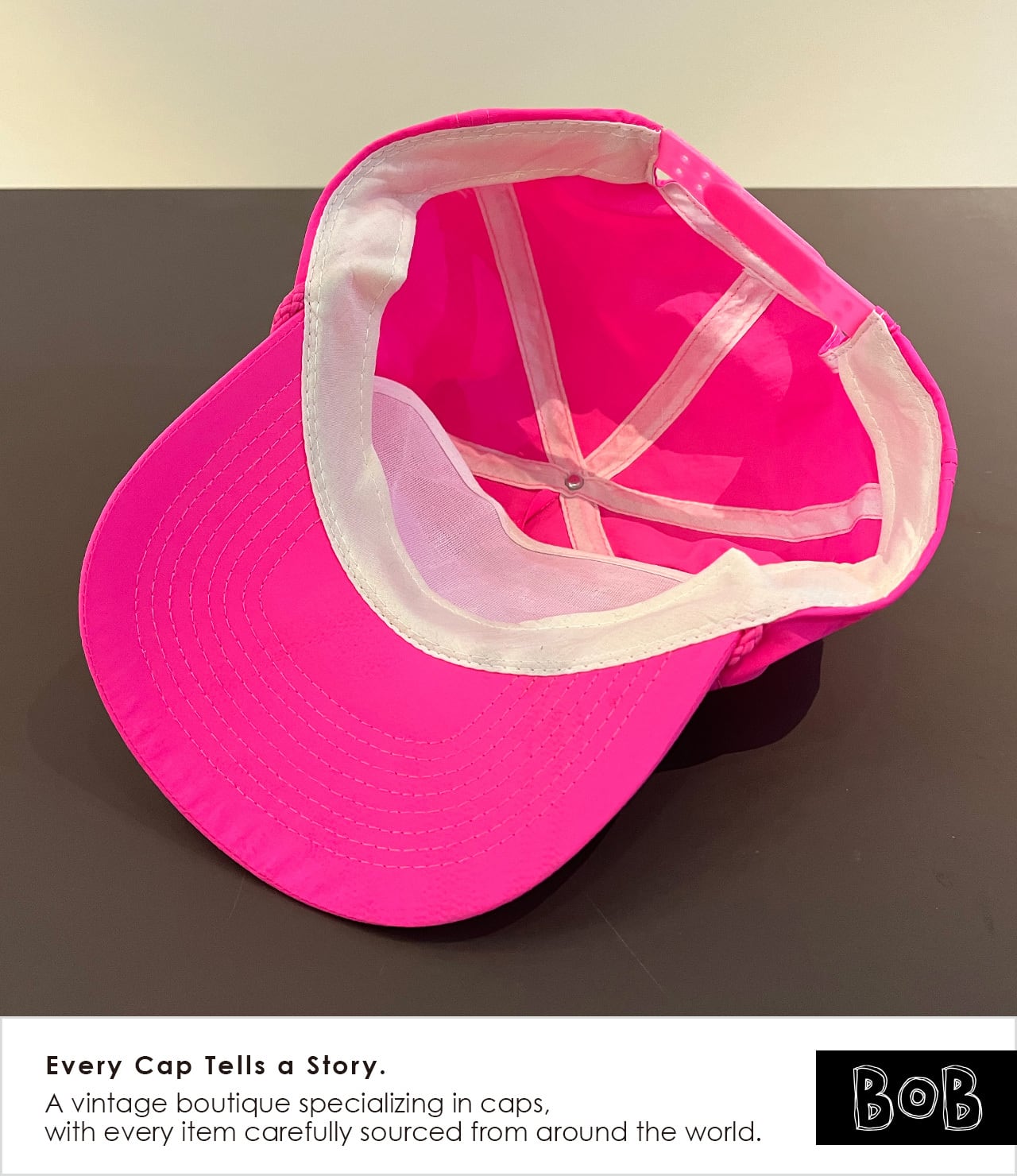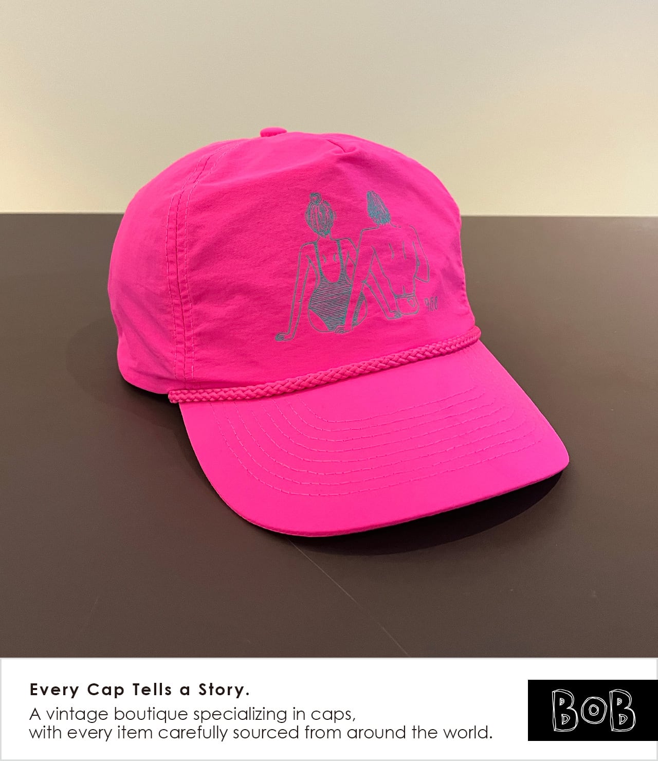 City Popなムードを纏ったネオンピンクのノーブランド・ロープキャップです。